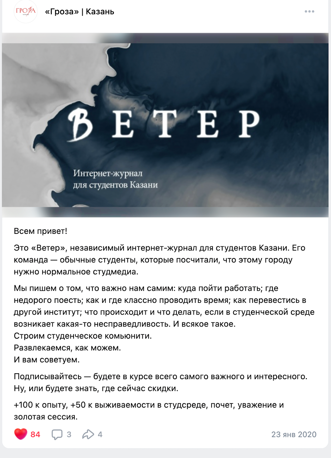 Так появился «Ветер», вот наш первый пост, ему уже шесть лет 🥹